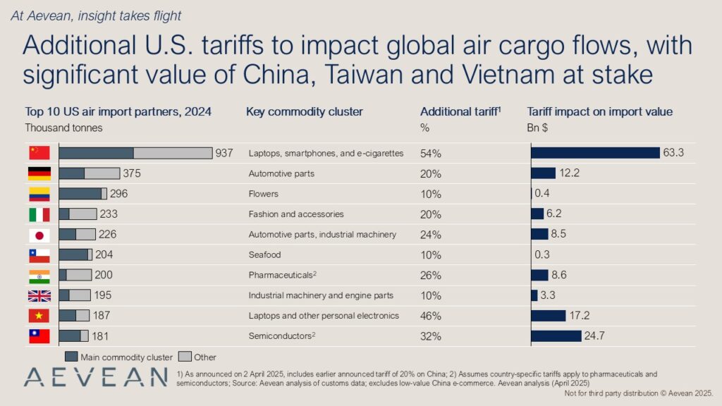 The latest tariffs unveiled on “Liberation Day” are set to reshape global air cargo dynamics, especially affecting air cargo from: