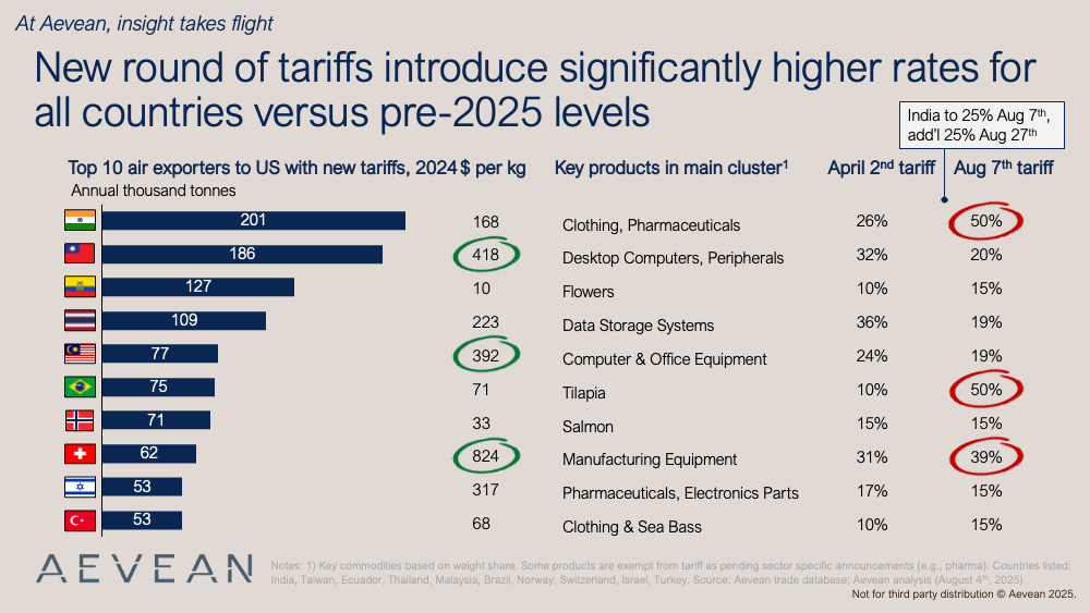 ⏹️ Taiwan, Malaysia (e.g., computers & parts) and Switzerland’s (e.g. pharmaceuticals, watches) tariffs likely to have major impact given high value density of goods
