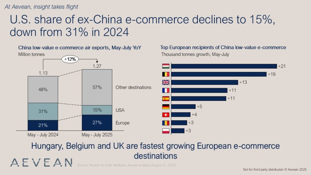 🛬 Europe’s top 3 destinations together welcome ±6 daily widebody freighters worth of e-commerce MORE in 2025 May-Jul than one year ago