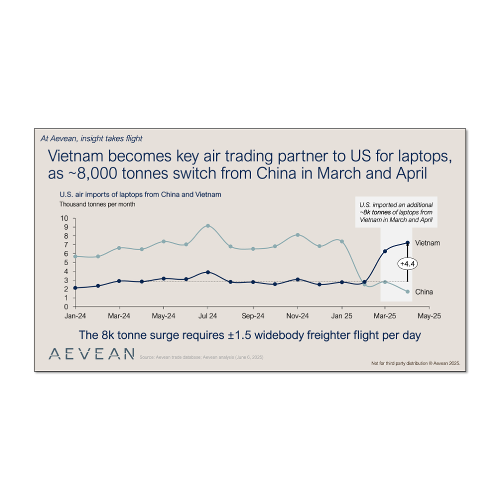 Read moreVietnam laptop exports to US surge by ~8,000 tonnes in March and April, an equivalent of ±1.5 widebody freighter flight per day