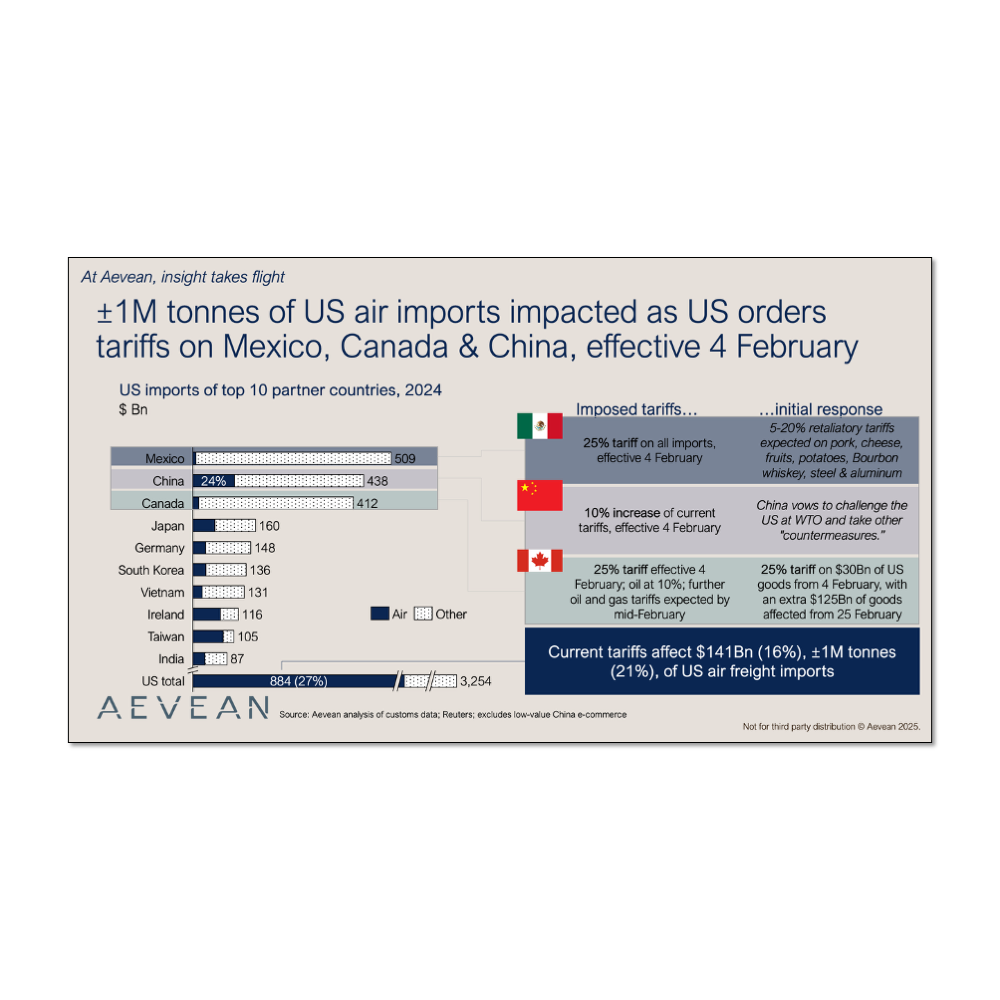 Read more±1M tonnes of U.S. air imports affected as the U.S. imposes tariffs on Mexico, Canada, and China, effective February 4